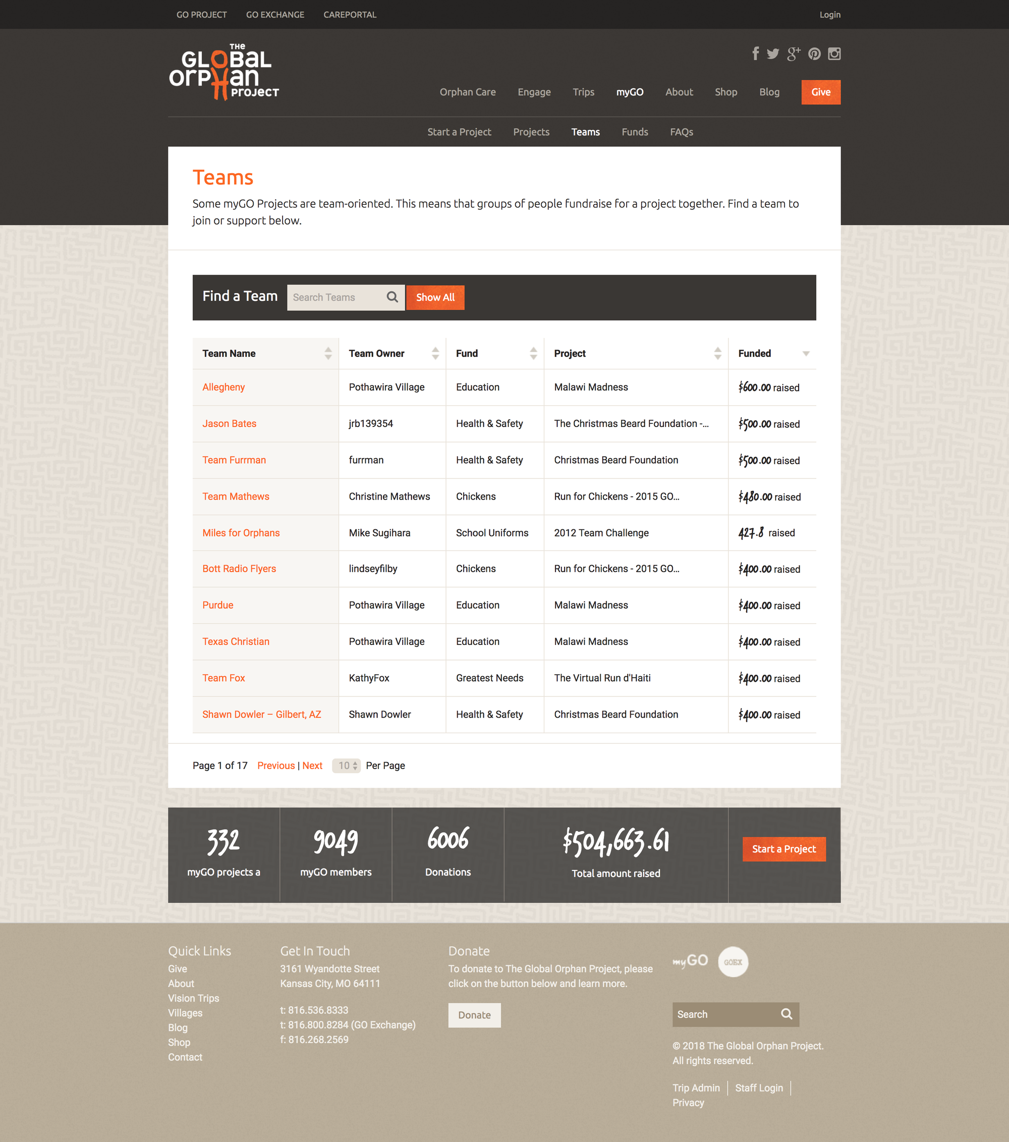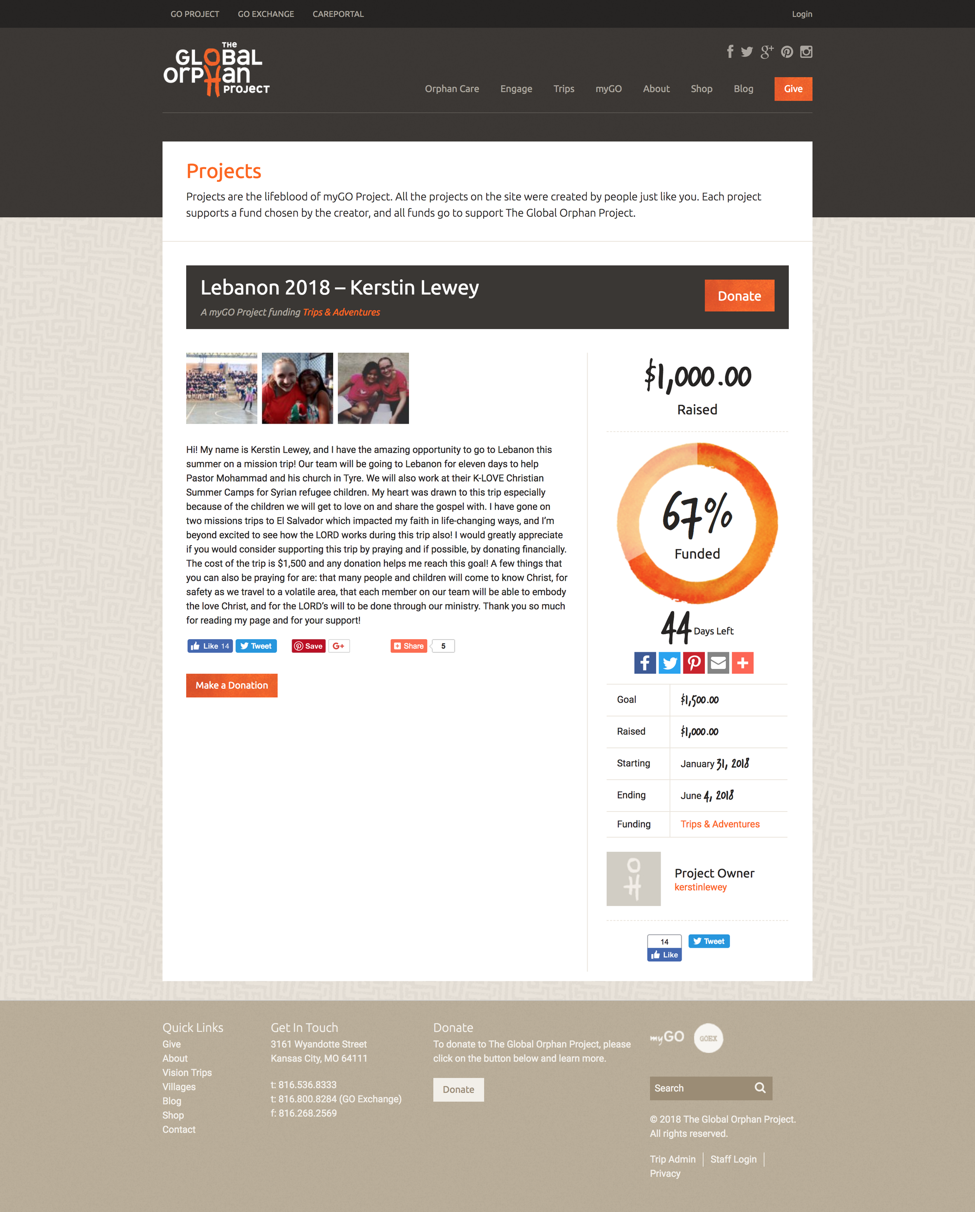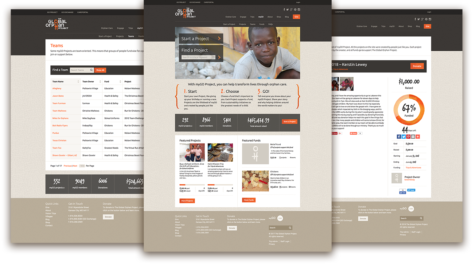I worked as the product and account manager on a team of five, creating a bespoke crowdfunding platform for The Global Orphan Project. We developed a tightly integrated custom theme and custom plugin running on WordPress for maximum cost efficiency and security. The platform generated a 1121% ROI over five years.