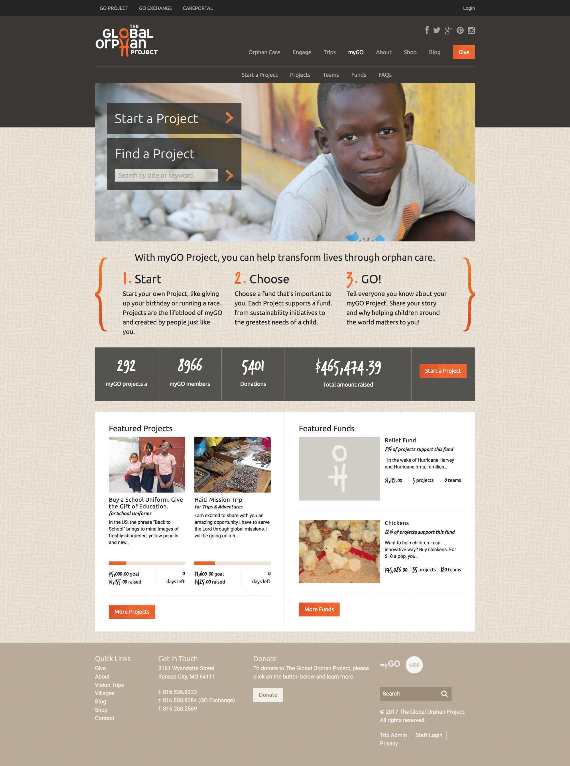 The Global Orphan Project (GOProject) needed a bespoke crowdfunding platform to support its international service initiatives of building self-sustaining communities to feed, house, and educate orphans. As a not-for-profit organization, GOProject faced budget constraints and limited technological expertise. They approached Voltage Creative, a digital agency with a long-standing relationship, to help bring their vision to life.